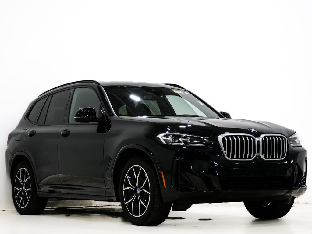 2022 BMW X3 xDrive30i 2.0L I4 TwinPower Turbo AWD Black Sapphire Metallic 8-Speed Automatic Sport, Aerodynamic Kit, Dynamic Damper Control, Dynamic Handling Package, Gesture Control, Heated Front Seats, Heated Steering Wheel, Lumbar Support, M Sport Brakes w/Blue Calipers, M Sport Package, M Sport Package (337), M Steering Wheel, Navigation, Panoramic Moonroof, Performance Control, Premium Package 2, Roof Rails in High-Gloss Shadowline, Shadowline Exterior Trim, Smoke Grey Aluminum Rhombicle Trim, Variable Sport Steering, Wheels: 19" x 7.5" M Y-Spoke Bi-Color (Style 887M), Without Exterior Lines Designation, 12 Speakers, 3.385 Axle Ratio, 4-Wheel Disc Brakes, ABS brakes, Air Conditioning, Alloy wheels, AM/FM Radio, AM/FM radio: SiriusXM with 360L, Apple CarPlay & Android Auto Compatibility, Auto High-beam Headlights, Auto-dimming door mirrors, Auto-dimming Rear-View mirror, Automatic temperature control, BMW Assist eCall, BMW TeleServices, Brake assist, Bumpers: body-color, Comfort Access Keyless Entry, Connected Package Pro, ConnectedDrive Services, Delay-off headlights, Driver door bin, Driver vanity mirror, Dual front impact airbags, Dual front side impact airbags, Electronic Stability Control, Emergency communication system: BMW Assist eCall, Enhanced Bluetooth, Exterior Parking Camera Rear, Four wheel independent suspension, Front & Rear Heated Seats, Front anti-roll bar, Front Bucket Seats, Front Center Armrest, Front dual zone A/C, Front reading lights, Front Ventilated Seats, Fully automatic headlights, Garage door transmitter, Genuine wood dashboard insert, Genuine wood door panel insert, Heated door mirrors, Hi-Fi Sound System, Illuminated entry, Knee airbag, Live Cockpit Pro w/Navigation, Low tire pressure warning, Memory seat, Navigation System, Occupant sensing airbag, Outside temperature display, Overhead airbag, Panic alarm, Passenger door bin, Passenger vanity mirror, Perforated SensaTec Upholstery, Power door mirrors, Power driver seat, Power Front Seats, Power Liftgate, Power passenger seat, Power steering, Power windows, Radio data system, Rain sensing wipers, Rear air conditioning, Rear anti-roll bar, Rear Manual Side Window Shades, Rear reading lights, Rear seat center armrest, Rear window defroster, Rear window wiper, Remote Engine Start, Remote keyless entry, Roof rack: rails only, Security system, SiriusXM w/360L, Speed control, Speed-sensing steering, Speed-Sensitive Wipers, Split folding rear seat, Spoiler, Sport Seats, Sport steering wheel, Steering wheel mounted audio controls, Tachometer, Telescoping steering wheel, Tilt steering wheel, Traction control, Trip computer, Turn signal indicator mirrors, Variably intermittent wipers, Wheels: 19" x 7.5" Y-Spoke (Style 693), WiFi Hotspot, 8-Speed Automatic Sport, Aerodynamic Kit, Dynamic Damper Control, Dynamic Handling Package, Gesture Control, Heated Front Seats, Heated Steering Wheel, Lumbar Support, M Sport Brakes w/Blue Calipers, M Sport Package, M Sport Package (337), M Steering Wheel, Navigation, Panoramic Moonroof, Performance Control, Premium Package 2, Roof Rails in High-Gloss Shadowline, Shadowline Exterior Trim, Smoke Grey Aluminum Rhombicle Trim, Variable Sport Steering, Wheels: 19" x 7.5" M Y-Spoke Bi-Color (Style 887M), Without Exterior Lines Designation. 4D Sport Utility Recent Arrival! CARFAX One-Owner. 21/28 City/Highway MPG